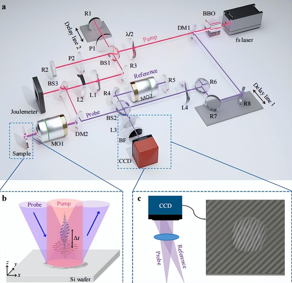 传统的时空成像技术依赖于反射成像,往往无法捕捉全面信息,导致这些相互作用的理论模型大多是定性的。为了解决该问题,研究团队将二维反射率和三维形貌成像相结合,开发了一种双模态超快显微镜系统。